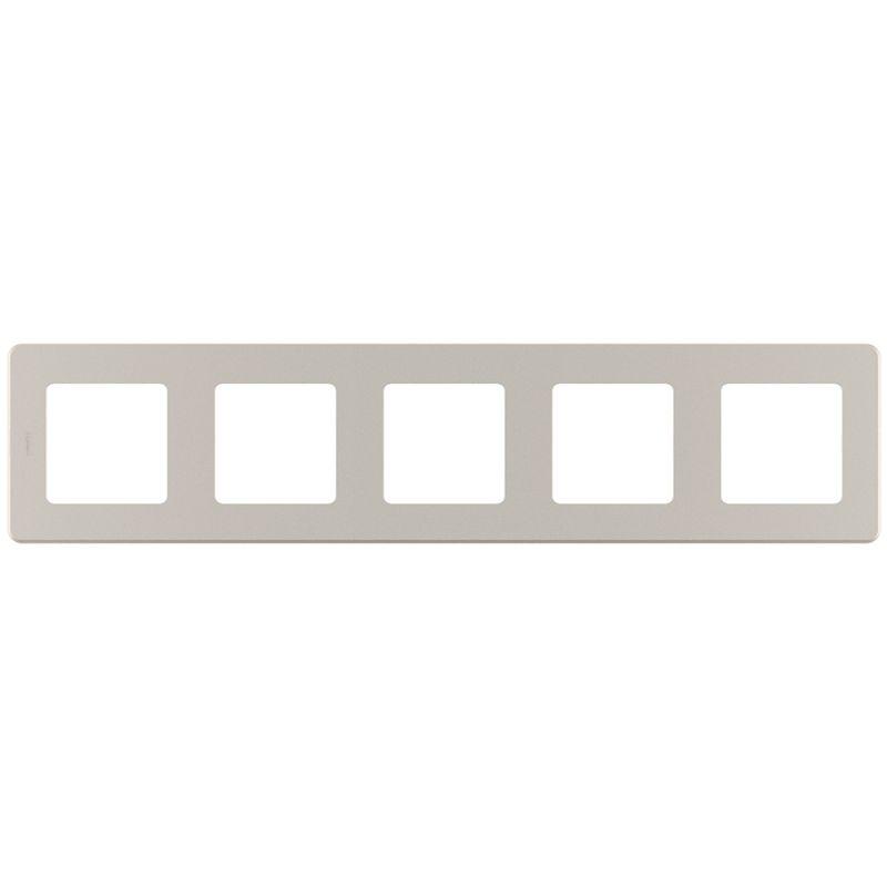 Рамка декоративная универсальная Legrand Inspiria, 5 постов, для горизонтальной или вертикальной установки, цвет "Шампань". Предназначена для установки на механизмы Legrand Inspiria. Особенности изделия: - Изготовлено из качественного пластика ABS, устойчивого к загрязнению и воздействию УФ-излучения. - Универсальная конструкция подходит для горизонтального и вертикального монтажа. - Инновационное крепление на защелках обеспечивает быстрый монтаж и демонтаж без необходимости снятия лицевых панелей механизмов, что повышает удобство и снижает трудозатраты. - Система зубчатых креплений позволяет регулировать глубину установки рамки, тем самым скрыть неровность стен и дефекты установки монтажных коробок.