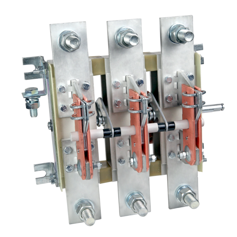 Разъединитель 3 полюсный на номинальный ток 1000 А, где установлена несъемная рукоятка, а механическая износостойкость составляет 6300 циклов.