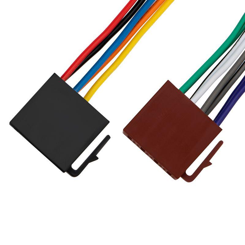Разъемы для автомагнитол "Евро" ISO (акустика + питание) предназначены для подключения автомагнитолы к электропроводке автомобиля. Изделие представляет собой специальную колодку с гнездом стандартизированного формата "Евро" ISO с проводами. Состоит из двух разъемных частей: по черной колодке подключается питание к автомагнитоле, а по коричневой передается акустический сигнал от магнитолы на акустику автомобиля. Цветовая маркировка проводов стандартная, что позволяет быстро подключать большинство автомагнитол.