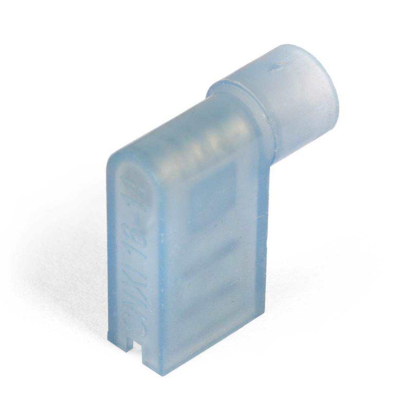 • Предназначены для формирования быстроразъемных изолированных соединений многопроволочных медных проводов с клеммными выходами электрооборудования типа «папа» • Материал изоляции: самозатухающий нейлон. Не содержит галогенов • Термостойкость изоляции: 105 °C • Материал разъема: латунь марки Л63 • Покрытие разъема: электролитическое лужение • Максимальное напряжение: 400 В • Особенности конструкции: • полностью изолированный корпус • исполнение «Easy Entry»: цельнолитой нейлоновый корпус имеет конусообразное сужение, обеспечивающее беспрепятственное заведение многопроволочной медной жилы • поперечные засечки на внутренней поверхности трубной части разъемов увеличивают механическую прочность соединения с жилой • Нейлоновый корпус обеспечивает полную изоляцию и механическую защиту разъемного соединения • Разъемы выполнены с поворотом 90° относительно линии прокладки проводов и могут быть использованы для монтажа в ограниченном пространстве • Комплементарны выходам типа «папа» на клеммах электрических устройств • Опрессовка проводника поверх изолирующего корпуса