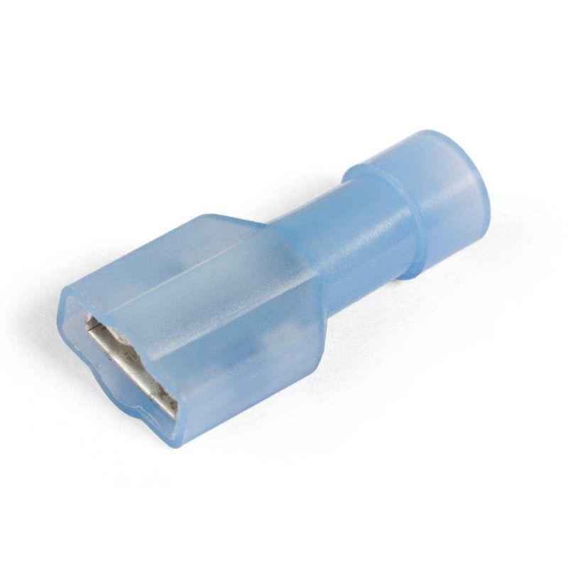 • Предназначены для формирования быстроразъемных, полностью изолированных соединений многопроволочных медных проводов • Материал изоляции: самозатухающий нейлон. Не содержит галогенов • Термостойкость изоляции: 105 °C • Материал разъема: латунь марки Л63 • Покрытие разъема: электролитическое лужение • Максимальное напряжение: 400 В • Особенности конструкции: • полностью изолированная конструкция • исполнение «Easy Entry»: цельнолитой нейлоновый корпус имеет конусообразное сужение, обеспечивающее беспрепятственное заведение многопроволочной медной жилы • поперечные засечки на внутренней поверхности трубной части разъемов увеличивают механическую прочность соединения с жилой • каждая клемма имеет конструктивный фиксатор замкового типа для прочного механического соединения с разъемом «папа» • Комплементарны разъемам РПИ-П и выходам типа «папа» на клеммах электрических устройств • Опрессовка проводника поверх изолирующего корпуса