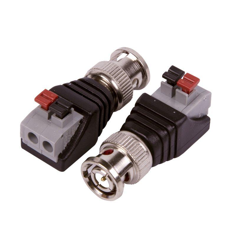 Разъём штекер BNC с быстрозажимной колодкой предназначен для подключения коаксиального кабеля, к видеокамерам, видеорегистраторам, мониторам и другим радиоэлектронным устройствам. Штекер BNC монтируется на кабель с помощью зажима жил без использования каких-либо инструментов. Этот способ крепления значительно проще и быстрее, чем пайка или монтаж под винт, но его надежность и качество соединения остаются на неизменно высоком уровне. Разъем изготовлен из никелированного цинка и высокопрочного пластика, центральный контакт из латуни с напылением технического золота, Диапазон рабочих температур от -40? до +60?.