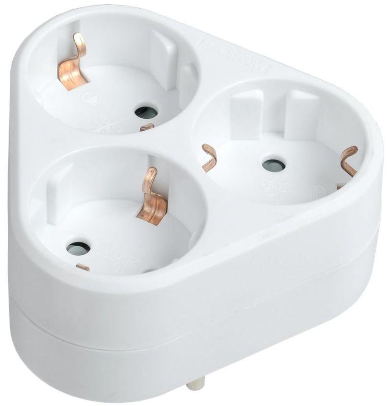 Тройник предназначен для подключения нескольких электроприборов к стационарной одноместной розетке.