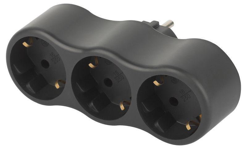 Сетевой разветвитель (тройник) ЭРА SPx-3e-B на 3 розетки, с заземлением. Цвет-черный. Максимальная мощность - 16А/3500 Вт, материал корпуса - полипропилен (пластик премиум сегмента). Эксклюзивный продакт-дизайн.