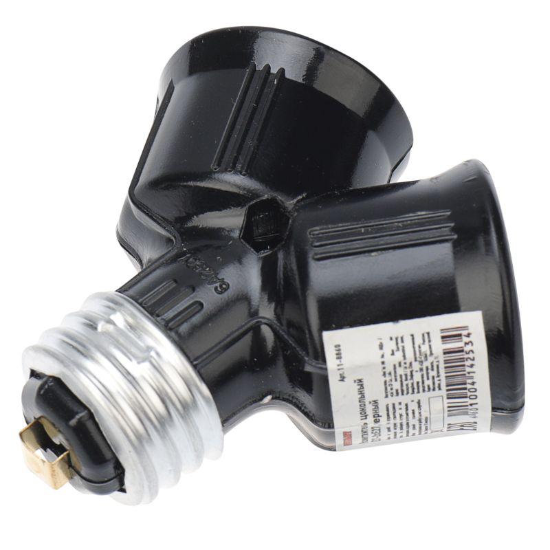 Разветвитель цокольный E27-2хE27 черн. Rexant 11-8860
