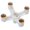 Цокольный разветвитель Е27 предназначен для подключения одновременно четырех ламп с цоколем Е27 к одному источнику. Корпус разветвителя изготовлен из термостойкого пластика PBT, который выдерживает высокие температуры отличается хорошими изоляционными свойствами, ударопрочностью и химической стойкостью, что делает использование патрона безопасным и надежным. Токоведущие части разветвителя изготовлены из латуни и обладают высокой электропроводностью и коррозионной стойкостью. Максимальная мощность на один патрон разветвителя составляет 30 Вт. Частота питания: 50/60 Гц.