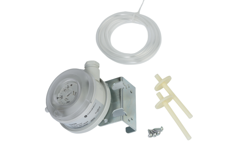 Реле дифференциального давления канальное, установка на воздуховод, регулируемый порог срабатывания в диапазоне 30…300 Па, выходной сигнал - переключающий контакт с коммутацией до 250 В переменного тока и до 1,5 А для резистивной нагрузки и 0,5 А для индуктивной нагрузки, штуцеры и трубка входят в комплект поставки