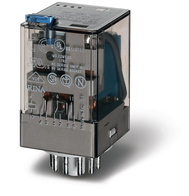 Реле электромеханическое универс. монтаж в розетку 3CO 10А AgNi 24В DC RTI 11-штырьковый разъем FINDER 601390240040