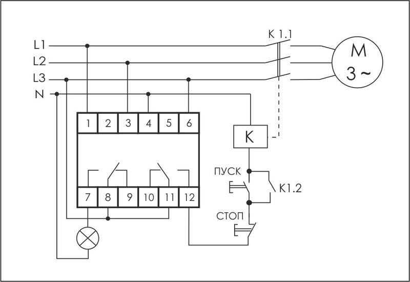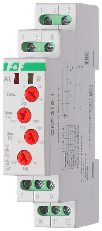 Реле контроля фаз серии "CKF" Монтаж на DIN-рейку. Предназначено для защиты электродвигателей и электроустановок, питаемых от трехфазной сети в случаях: отсутствия хотя бы одной из фаз, асимметрии напряжения, повышения/снижения напряжения, слипания и нарушения чередования фаз, обрыва нулевого провода. Принцип работы Если напряжение в пределах нормы, контакты исполнительного реле замкнуты и на контактор управления электродвигателем подается напряжение, управляющее его включением. В случае одной из вышеперечисленных аварийных ситуаций контакты реле размыкаются и контактор отключается. Включение происходит автоматически после восстановления сетевого напряжения питания. Особенности: контроль наличия фаз; контроль асимметрии между фазами; контроль нижнего значения напряжения; контроль верхнего значения напряжения; контроль слипания и чередования фаз; защита от обрыва нулевого провода; 4 режима работы; напряжение питания 3x230+N В AC; контакт - 2NO/NC (8 А).