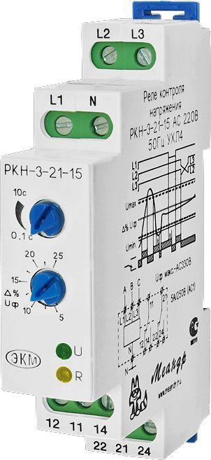 Реле контроля напряжения 3ф РКН-3-21-15 АС230В/AC400В УХЛ4 4-х проводн.схема вкл.; асимметр. регулир. порогов; задержка срабат. от 0.1...10с ток контактов исполнит.о реле 8А 2п Меандр A8302-16934065