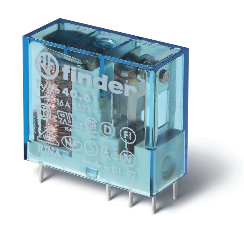 Реле миниатюрное универсальное электромеханич. монтаж на печатную плату или в розетку выводы с шагом 5мм 1CO 16А AgCdO 24В AC/DC (бистабильная) RTII FINDER 406160240000