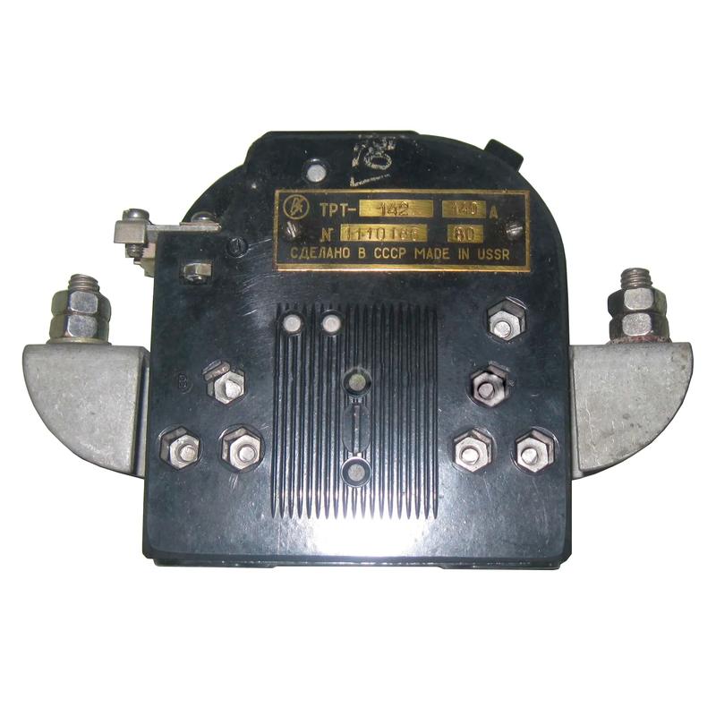 Реле электротепловые токовые серии ТРТ 142 предназначены для защиты от лектрооборудования от перегрузок. Реле выполняются: однополюсными; с самовозвратом и устройством для ускорения возврата вручную, без температурной компенсации, без ускоренного срабатывания, с регулировкой тока несрабатывания и с одним размыкающим контактом. Номинальный ток несрабатывания реле при нулевом положении регулятора уставки - 140А