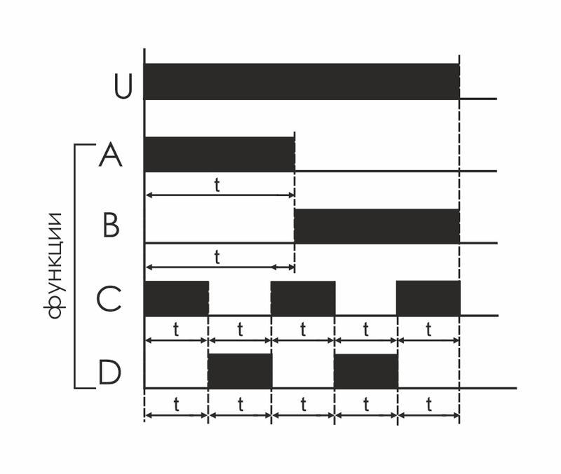 Реле времени серии "PCU" Монтаж на DIN-рейку. Предназначено для включения/выключения потребителей в системах автоматики (в вентиляционных, отопительных, осветительных, сигнализационных и т.п.) на заданный отрезок времени. Функции: Включение нагрузки на время t (A); Задержка включения(В); Циклическая работа с задержкой выключения (С); Циклическая работа с задержкой включения (D). Особенности: многофункциональное (4 функции); напряжение питания 230 В AC; 24 В AC/DC; диапазон выдержки времени 0,1 с...24 суток ; контакт - 2NO/NC (2х8 А).