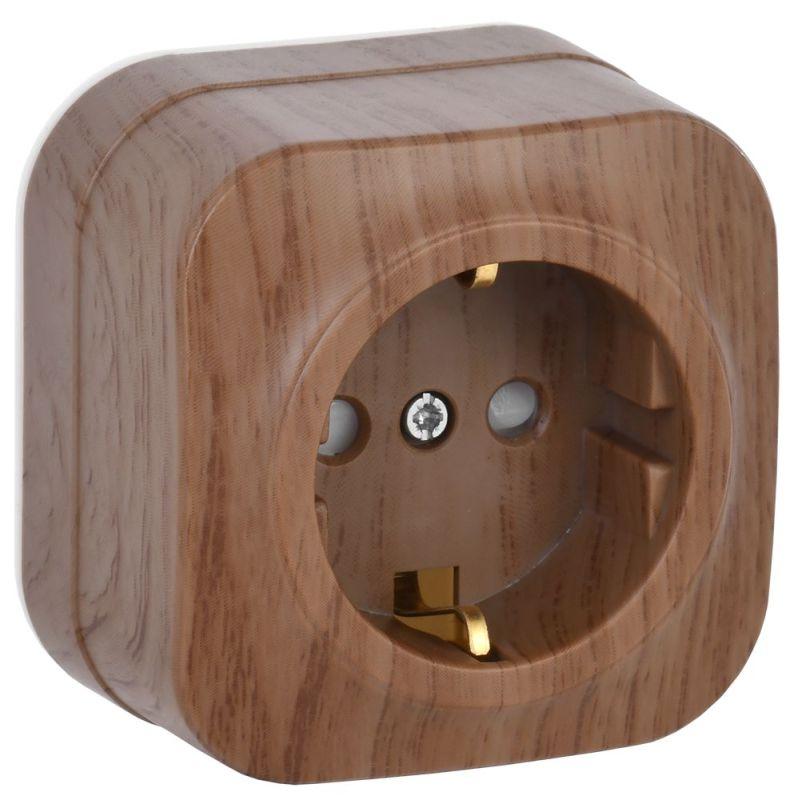 Розетка 1-м ОП GLORY РСш20-3-ХД 16А с заземл. защ. шторки дуб IEK ERH14-K24-16