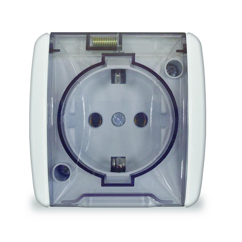 Розетка 1-м ОП Клио 16А IP44 с заземл. с прозр. крышкой бел. UNIVersal К2229