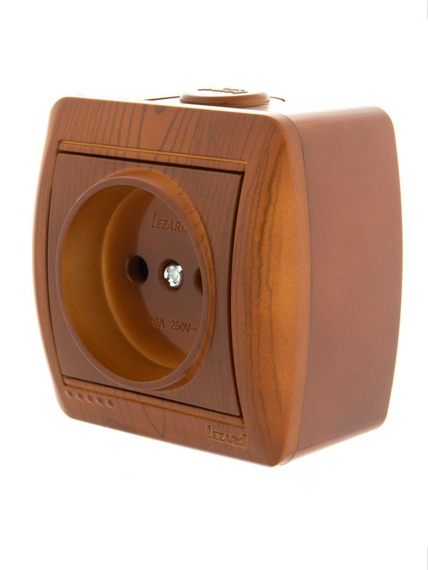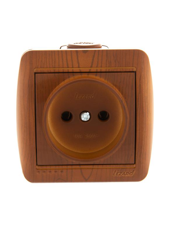 Розетка 1-м ОП Ната керам. без заземл. сосна Lezard 710-0800-121 представляет собой электроустановочный механизм одноместной розетки со стороной, равной 90 мм, цвета "сосна". Корпус изготовлен из негорючего пластика, устойчивого к воздействию ультрафиолетовых лучей, поэтому фасадная панель сохраняет свой первоначальный цвет более продолжительное время и не желтеет в процессе эксплуатации), более устойчив к механическим повреждениям (царапинам и проч.), высокой температуре, не плавится и не чернеет. Основание керамическое. Монтируется на глубину 50 мм, на поверхность стены.