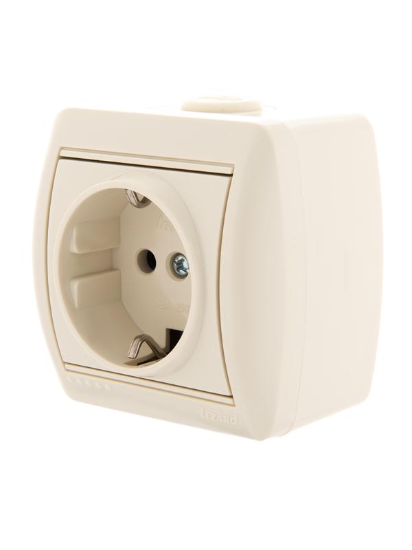 Розетка 1-м ОП Ната керам. с заземл. крем. Lezard 710-0300-122 представляет собой электроустановочный механизм одноместной розетки со стороной, равной 90 мм, кремового цвета. Корпус изготовлен из негорючего пластика, устойчивого к воздействию ультрафиолетовых лучей, поэтому фасадная панель сохраняет свой первоначальный цвет более продолжительное время и не желтеет в процессе эксплуатации), более устойчив к механическим повреждениям (царапинам и проч.), высокой температуре, не плавится и не чернеет. Основание керамическое. Монтируется на глубину 50 мм, на поверхность стены.