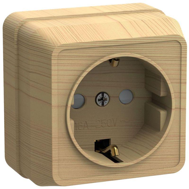 Розетка 1-м ОП Октава РСш20-3-ОС 16А IP20 с заземл. защ. шторки сосна IEK ERO14-K03-16-DC