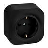 "Розетка с заземлением с защитными шторками накладного (открытого) монтажа Legrand Quteo, цвет ""Чёрный матовый"", степень защиты IP20, номинальный ток 16A, напряжение ~250В, максимальная мощность 3680Вт, винтовые зажимы. Устанавливается в жилых и общественных помещениях. Применяется для электропитания в зданиях с проводкой с заземлением (с защитным проводником). Шторки осуществляют защитную функцию путём ограничения доступа к токоведущим контактам. Доступ открывается только при подключении вилки. Подходит как для скрытой, так и для открытой проводки. Идеальная совместимость с кабельными мини-каналами Metra. Особенности изделия: - Глубокий матовый чёрный цвет - Окрашено по технологии, используемой в автомобильной промышленности (стойкий к износу и повреждениям) - Не оставляет отпечатков пальцев и имеет приятную тактильность - Контактная группа изготовлена из латуни CuZn37, имеет высокую степень упругости и сохраняет плотный контакт с вилкой, при длительной эксплуатации - Скоба заземления имеет особый профиль для большей прочности - Зажимы для присоединения проводников винтовые, с невыпадающими винтами, что исключает их потерю при монтаже - Все токоведущие части розетки имеют защиту от случайного прикосновения - Механизм изготовлен из высококачественного поликарбоната: обладает высокой электробезопасностью, не поддерживает горение - Простое выравнивание изделий при установке в ряд,благодаря специальной форме основания - Корпус ударопрочный из пластичного полипропилена, стойкого к внешним воздействиям, экологичного и безопасного - Корпус крепится к механизму винтом - Перфорация на корпусе для безошибочного вырезания отверстий при монтаже открытой проводки - В основании преднарезаны 4 отверстия для подвода кабеля при монтаже скрытой проводки"