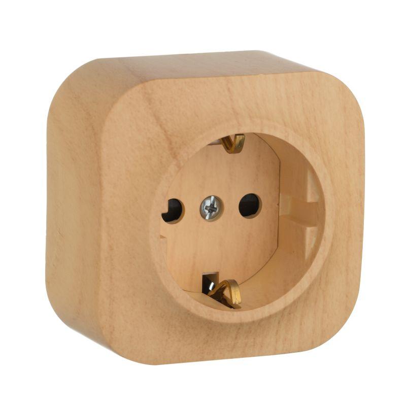Розетка с заземлением и защитными шторками Legrand Quteo для открытого монтажа, цвет дерево. Максимальный ток 16 А, максимальная мощность 3680 Вт. Применяется в зданиях, оборудованных для повышения безопасности проводкой с заземлением (с защитным проводником). Рекомендуются к применению в квартирах и помещениях в которых могут быть дети. Шторки осуществляют защитную функцию путём ограничения доступа к токоведущим контактам. Доступ открывается только при подключении вилки. Особенности: - Матовая. Имитация под светлое дерево. - Все токоведущие части розетки имеют защиту от случайного прикосновения. - Контактная группа изготовлена из латуни CuZn37, имеет высокую степень упругости и сохраняет плотный контакт с вилкой, при длительной эксплуатации. - Скоба заземления имеет особый профиль для большей прочности. - Зажимы для присоединения проводников винтовые, с невыпадающими винтами. Исключают потерю винтов при монтаже. - Внешний корпус крепится к механизму винтом. Особенности серии Quteo: - Современный формат накладного монтажа - Механизм изготовлены из высококачественного поликарбоната, не проводит электрический ток, не поддерживает горение. - Простое выравнивания изделий при установке в ряд,благодаря специальной форме основания. - Корпус ударопрочный из пластичного полипропилена стойкого к внешним воздействиям. - Перфорация на корпусе для безошибочного вырезания отверстий при монтаже открытой проводки - В основании преднарезаны 4 отверстия для подвода кабеля при монтаже скрытой проводки