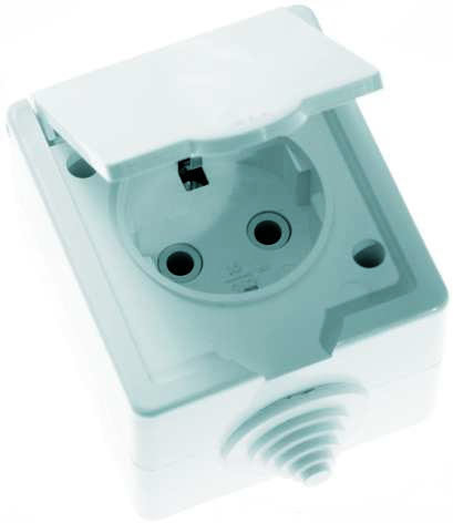 Розетка 1-м ОП РА16-660 с заземлением IP44 Кунцево влагозащищенная предназначена для открытой установки в условиях повышенного уровня сырости — это могут быть гаражи, подвалы, мастерские и другие подобные помещения. Изделие, изготовленное из пластика, устойчивого к физическому воздействию, оснащено защитной крышкой. Крышка защищает контакты розетки в период, когда она не используется, препятствуя тем самым возможности попадания влаги и брызг на жлементы, находящиеся под напряжением. Производит розетки данного типа ООО «Кунцево-Электро» - одна из авторитетнейших национальных компаний, специализирующихся производстве электроустановочных изделий — розеток, выключателей, удлинителей, таймеров и т. д. Вся продукция соответствует международным стандартам и отличается высоким качеством. Технические характеристики розетки: количество модулей -2; заземление — предусмотрено; сила тока — 16А; номинальное напряжение — 230В; степень защиты - IP44; способ монтажа — открытый; тип зажима — винтовой; цвет — белый.