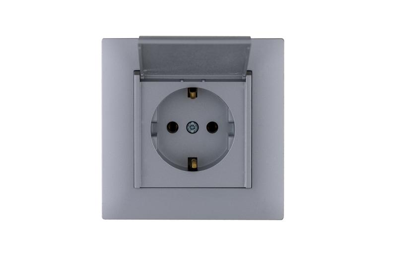Розетка 1-м с крышкой Karea RIZZ STAR с заземл. сер. Makel 88065029