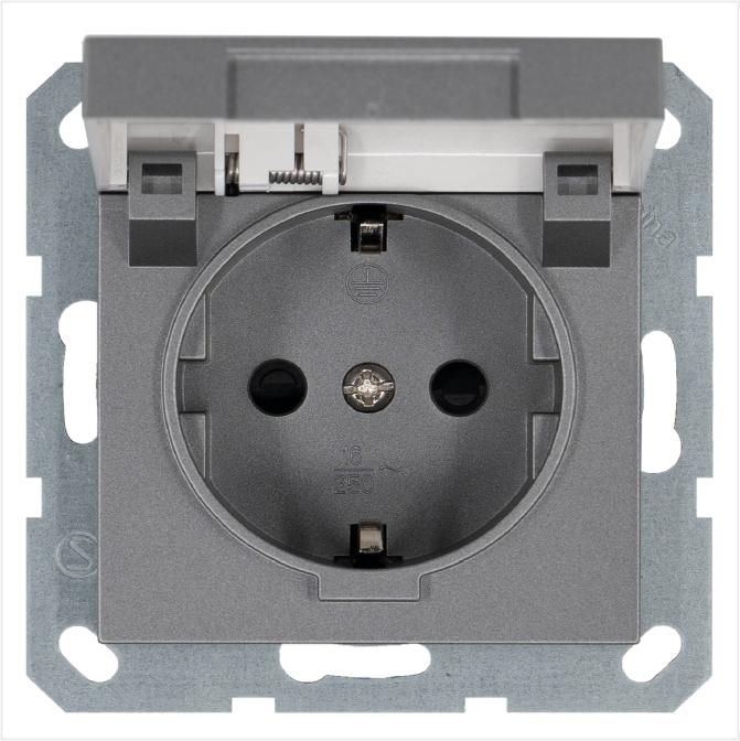 Розетка 1-м Shuko 16А IP20 с заземл. защ. шторки с крышкой механизм алюм. Jasmart G5505S