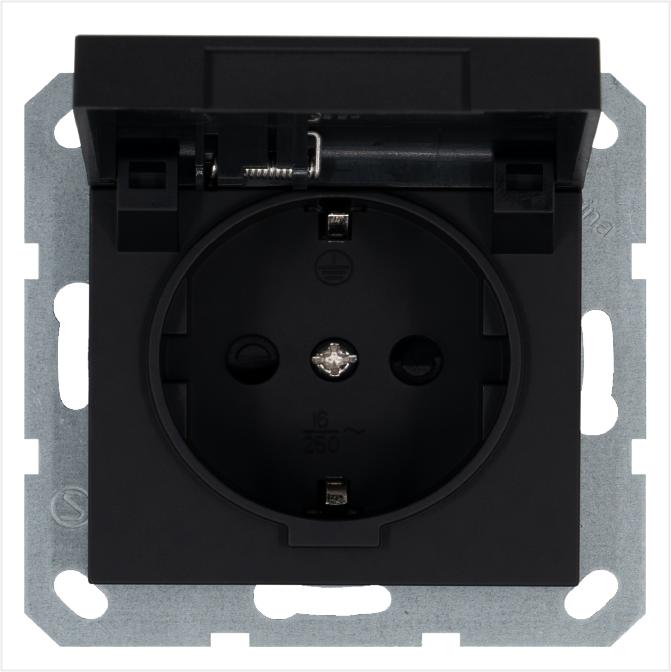 Розетка 1-м Shuko 16А IP20 с заземл. защ. шторки с крышкой механизм черн. матов. soft touch Jasmart G5505PB