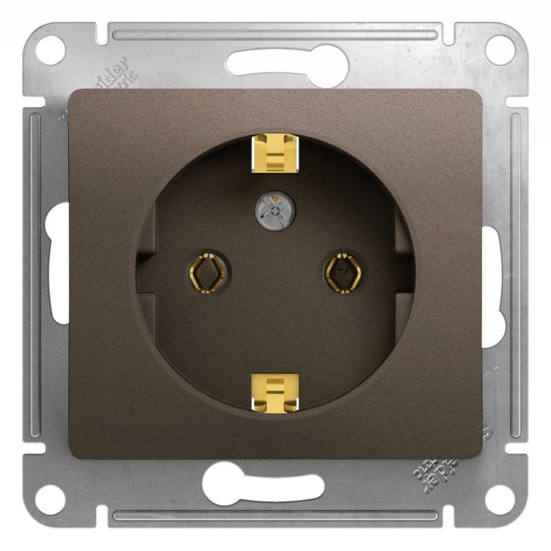 Механизм Systeme Electric (ранее Schneider Electric) серии Glossa (цвет шоколад) розетки одинарной с заземлением и без шторок подходит для сетей 250 В, на ток 16 А. - Заземляющий контакт обеспечивает дополнительную защиту от удара электрическим током. При наличии заземления электрический потенциал уходит в землю, защищая человека. - Выполнен из материала PС+ASA, стойкого к УФ-излучению и появлению царапин. - Эргономичные клеммы розеток расположены в один ряд.