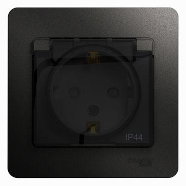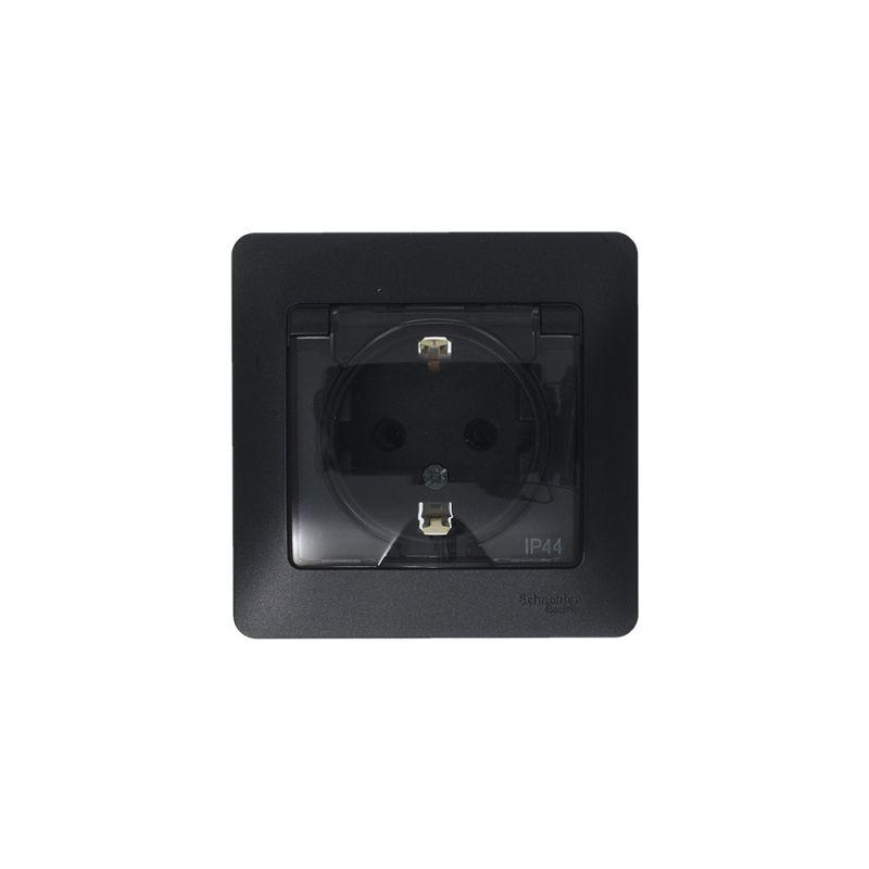 Розетка Systeme Electric (ранее Schneider Electric) серии Glossa (в сборе, цвет антрацит) одинарная с заземлением, шторками и крышкой подходит для сетей 250 В, на ток 16 А. - Изделие со степенью защиты IP44 обеспечит безопасность использования в ванной и на кухне. - Заземляющий контакт обеспечивает дополнительную защиту от удара электрическим током. При наличии заземления электрический потенциал уходит в землю, защищая человека. - Выполнен из материала PС+ASA, стойкого к УФ-излучению и появлению царапин.