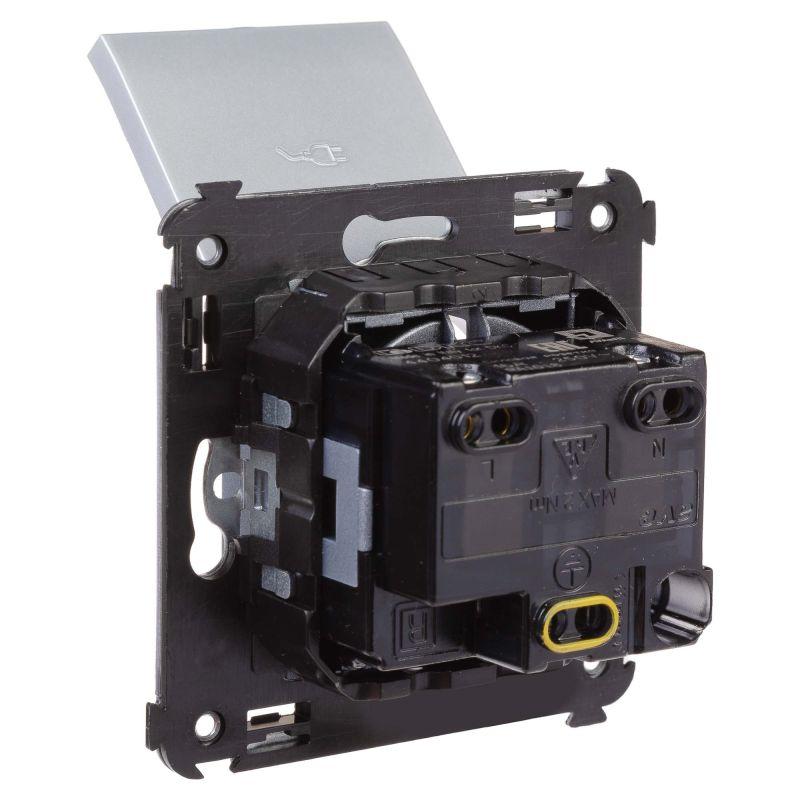 Розетка 2P+E с крышкой – это однофазная розетка с заземлением. Изделие предназначено для скрытого монтажа в стену и может применяться как в жилых, так и в коммерческих или производственных помещениях. Крышка защищает механизм от загрязнения и попадания влаги в то время, когда розетка не используется. Номинальное напряжение – 230 В, номинальный ток – 16 А. Материал: металл, термопласт. Пластиковые элементы устройства имеют стильный оттенок "Закаленная сталь" и сдержанный матовый блеск, придающий электроустановочному изделию утонченность и изящество. Производитель оставляет за собой право вносить во внешний вид изделия изменения, которые не влияют на его функционал, безопасность и надежность.