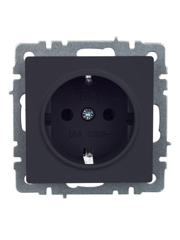 Розетка 1-м СП BRITE РС11-1-0-БрГ 16А с заземл. без защ. шторки механизм графит IEK BR-R11-16-K53