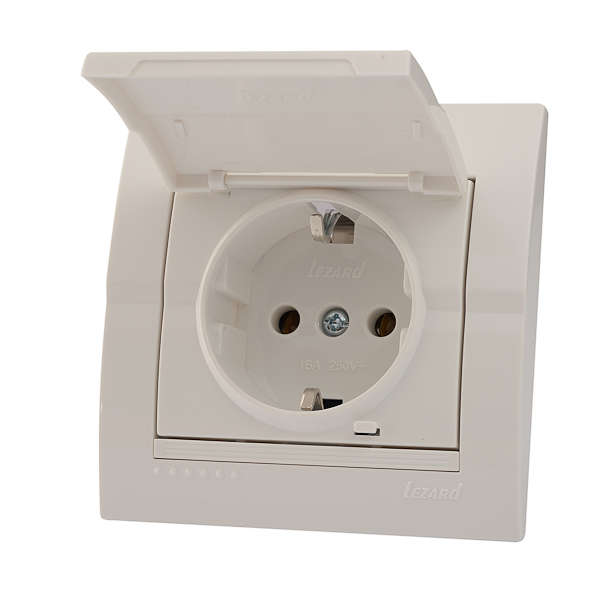 Розетка 1-м СП Deriy 16А IP20 с заземл. с защ. крышкой керамика бел./бел. LEZARD 702-0202-123