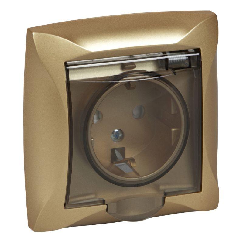 Дуэт розетка с заземлением со шторками с крышкой, 16А, IP44, в сборе, шампань. тип устройства или его аксессуаров: 1 розетка - комплектация изделия: механизм в сборе - описание стандарта розетки: с заземляющим контактом. Преимущества: Ваш вкус оценят, Доступная цена, Инновационный дизайн, Безопасность и надежность монтажа, Большой выбор функциональных возможностей и цветовых сочетаний, Безопасная эксплуатация изделий, Соответствие ГОСТ Р и МЭК, Удобная упаковка.. применения: - Для недорогого ремонта, Для загородного дома, Для офисов класса В, Для гостиниц..