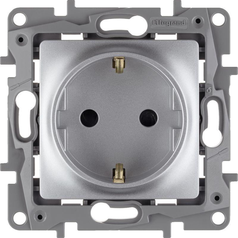 Розетка с заземлением и защитными шторками Legrand Etika для скрытого монтажа, цвет алюминий. Максимальный ток 16 А, максимальная мощность 3680 Вт. Применяется в зданиях, оборудованных для повышения безопасности проводкой с заземлением (с защитным проводником). Рекомендуются к применению в квартирах и помещениях с детьми. Шторки осуществляют защитную функцию путём ограничения доступа к токоведущим контактам. Доступ открывается только при подключении вилки. Особенности: - Шторки для защиты от детей интегрированы в механизм и не затрудняют подключение и извлечение вилки. - Все токоведущие части розетки имеют защиту от случайного прикосновения. - Контактная группа изготовлена из латуни CuZn37, имеет высокую степень упругости и сохраняет плотный контакт с вилкой, при длительной эксплуатации. - Скоба заземления имеет особый профиль для большей прочности. - Зажимы для присоединения проводников винтовые. - Лицевая панель крепится на защелках. Изготовлена из прочного глянцевого поликарбоната, стойкого к механическим воздействиям, выгоранию и загрязнениям. Особенности серии Etika: - Корпус механизма- высококачественный поликарбонат, не проводит электрический ток, не поддерживает горение. - Специальный профиль внешнего контура механизма обеспечивает простоту и безошибочность многопостового монтажа. - Острые крепёжные лапки с широким углом раскрытия, обеспечивают надёжную фиксацию в монтажной коробке