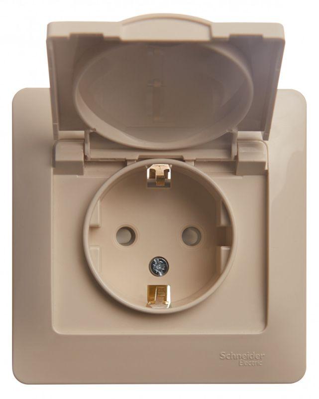 Розетка Systeme Electric (ранее Schneider Electric) серии Glossa (в сборе, цвет бежевый) одинарная с заземлением, шторками и крышкой подходит для сетей 250 В, на ток 16 А. - Заземляющий контакт обеспечивает дополнительную защиту от удара электрическим током. При наличии заземления электрический потенциал уходит в землю, защищая человека. - Выполнен из материала PС+ASA, стойкого к УФ-излучению и появлению царапин. - Эргономичные клеммы розеток расположены в один ряд.