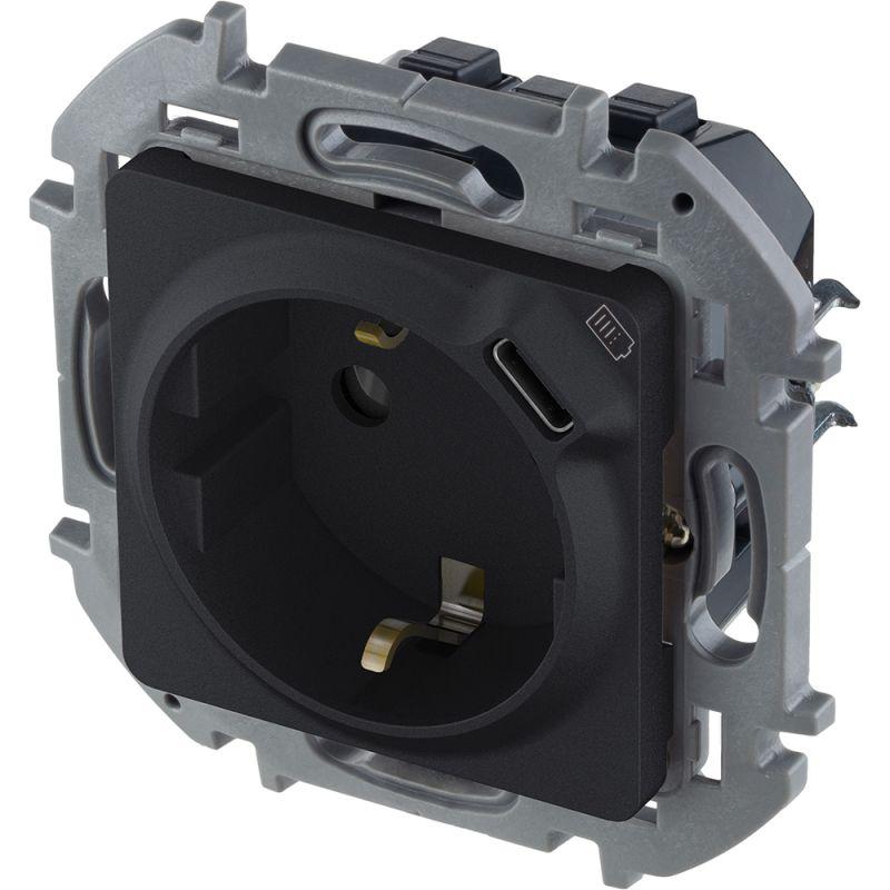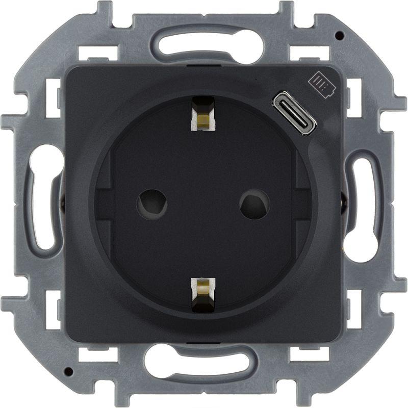 Комбинированная розетка 2К+З с зарядным устройством USB тип С Legrand Inspiria для скрытого монтажа, цвет "Антрацит". Максимальный ток розетки 16АХ, напряжение розетки ~250В, напряжение зарядного устройства =5В, максимальный зарядный ток 1500 мА. Применяется для одновременного электропитания бытовых потребителей и зарядки мобильного устройства. Оснащена интегрированными шторками, которые защищают детей и других пользователей от удара электрическим током. Особенности изделия: - Устройство размещается в 1 установочное место и подходит для многопостового монтажа без ограничений. - Возможно одновременное подключение двух устройств для элекропитания и зарядки. - Стандартный ток розетки 16 АХ позволяет осуществлять электропитание любых бытовых электроприборов без ограничений. - Защитные шторки интегрированы в механизм, обеспечивают высокий уровень электробезопасности и не затрудняют подключение и извлечение вилки. - Зарядный модуль интегрирован в схемотехнику, не требуя дополнительных подключений и соединений при установке. - Современный реверсивный разьем USB тип С очень удобен в использовании и актуален для будущих гаджетов. - Зарядный модуль оснащен встроенной защитой от перегрузки, что повышает безопасность его использования в быту. - Стандартное подключение к электросети двумя проводами (фаза и нейтраль) позволяет легко заменить стандартную электрическую розетку.