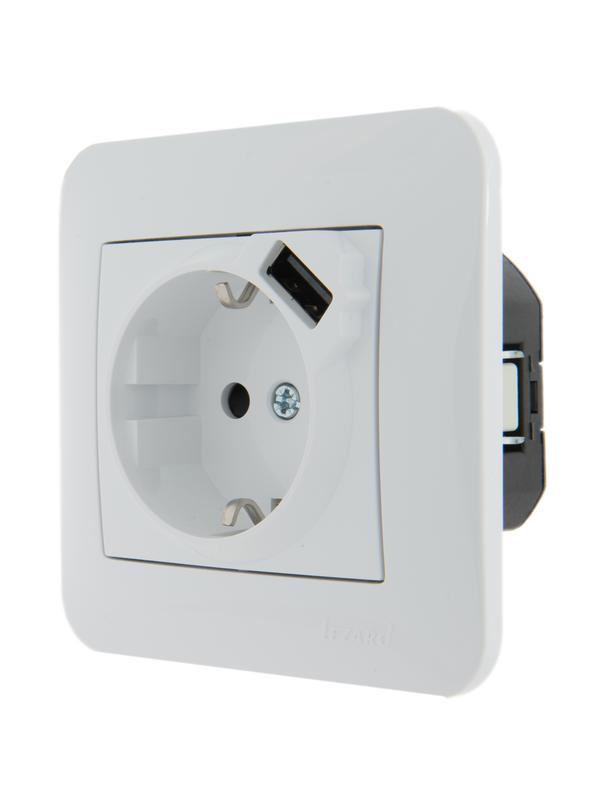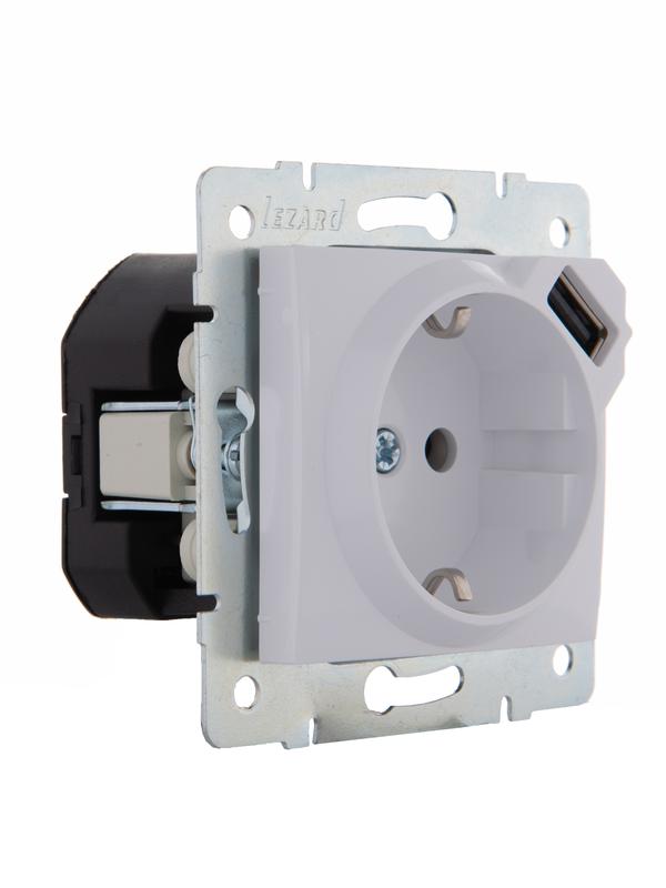 Розетка 1-м СП Karina 16А с заземл. с заряд. устройством USB механизм бел. LEZARD 707-0288-181