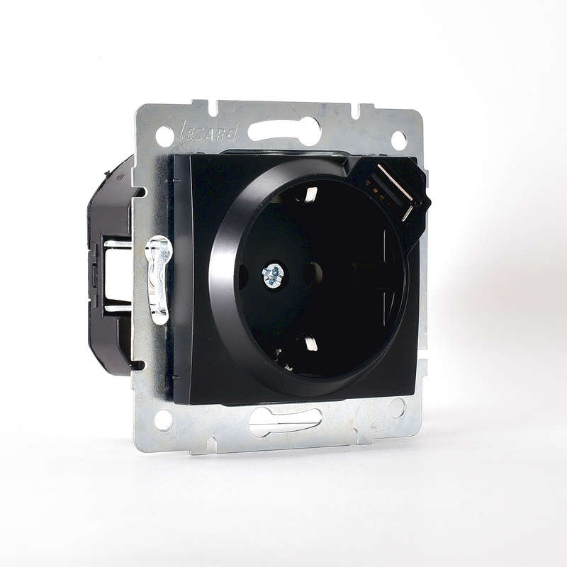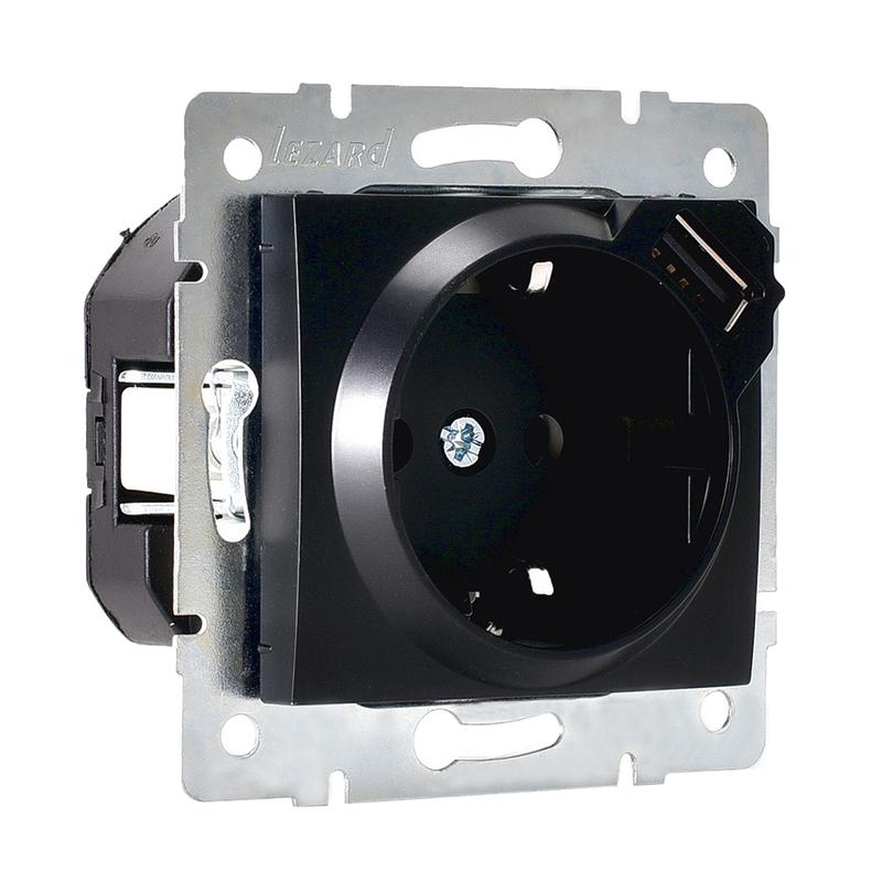 Розетка 1-м СП Karina 16А с заземл. с заряд. устройством USB механизм черн. бархат LEZARD 707-4288-181