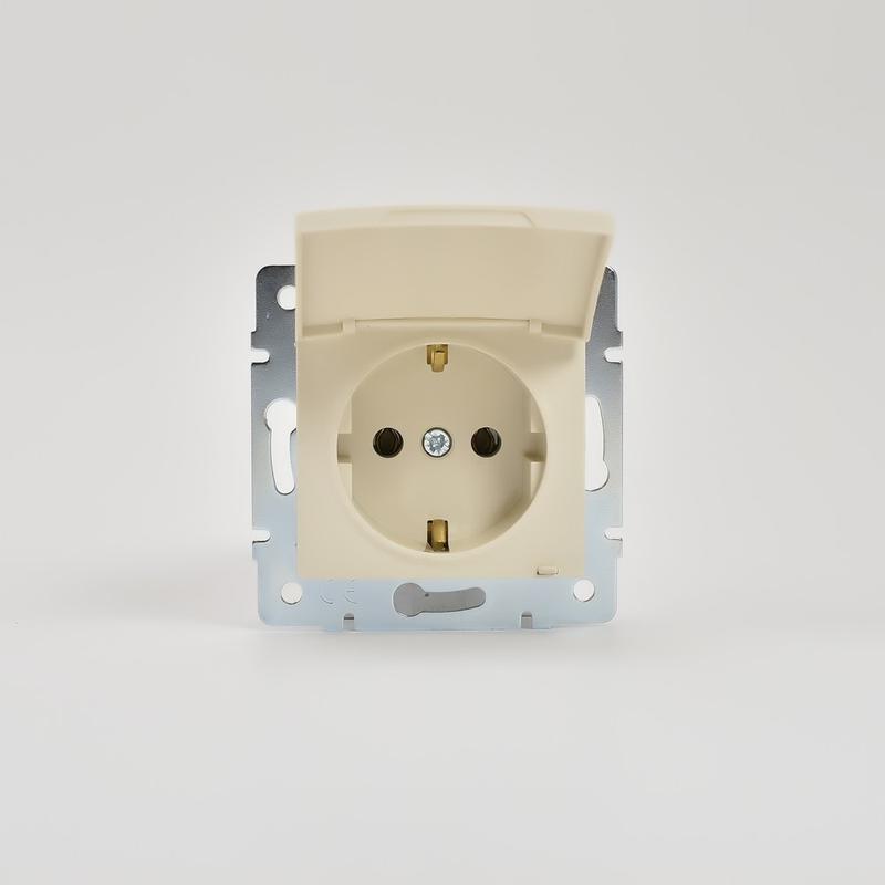 Розетка 1-м СП Karina с заземл. с крышкой термопласт механизм крем. LEZARD 707-0388-123B
