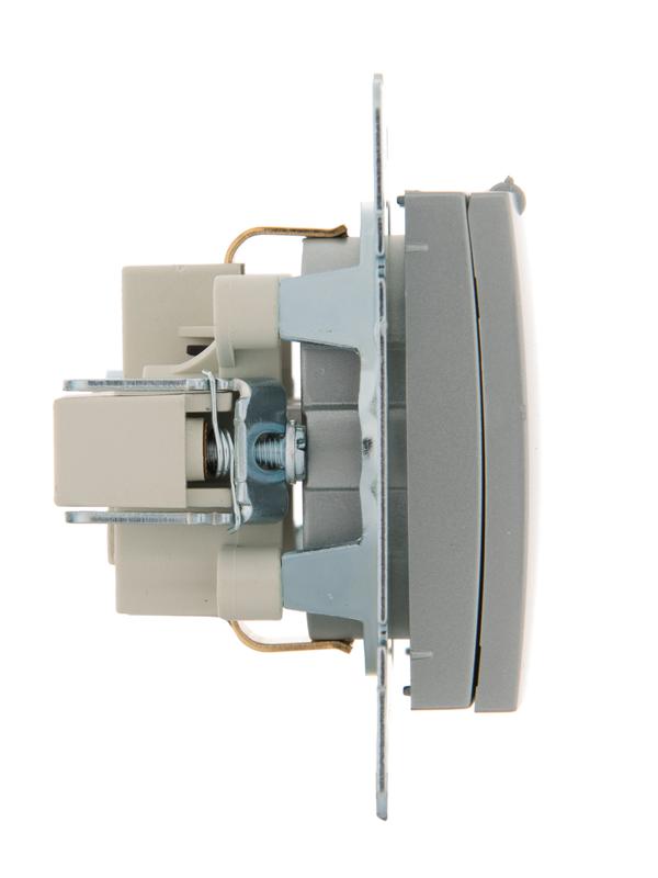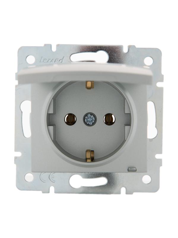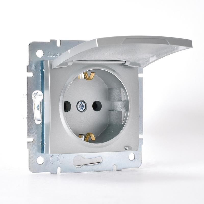 Розетка 1-м СП Karina с заземл. с крышкой термопласт механизм матов. серебр. LEZARD 707-4388-123B