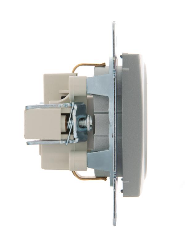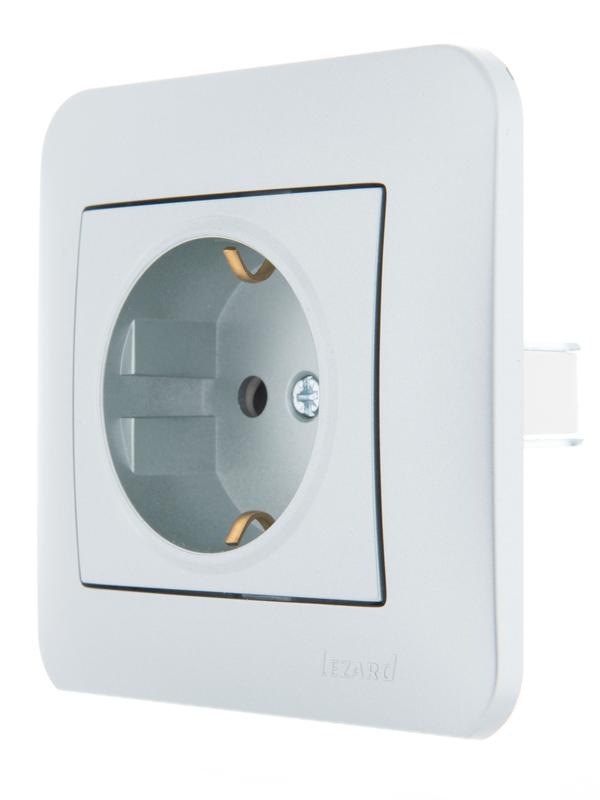 Розетка 1-м СП Karina с заземл. защ. шторки термопласт механизм матов. серебр. LEZARD 707-4388-124B