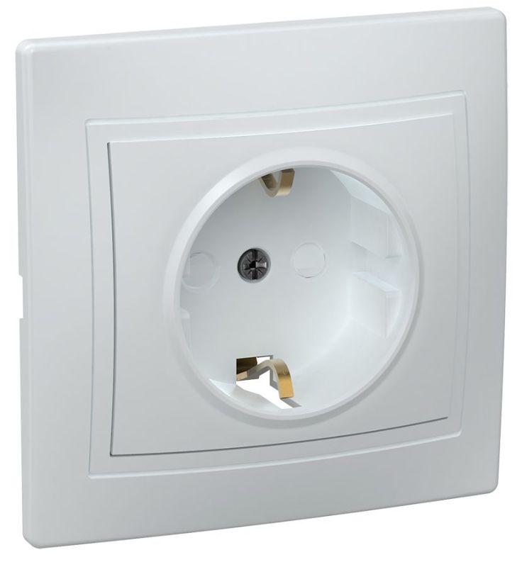 Розетка 1-м СП Кварта РСш10-3-КБ 16А IP20 с заземл. защ. шторки керамика бел. IEK ERK14-K01-16-K