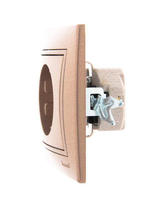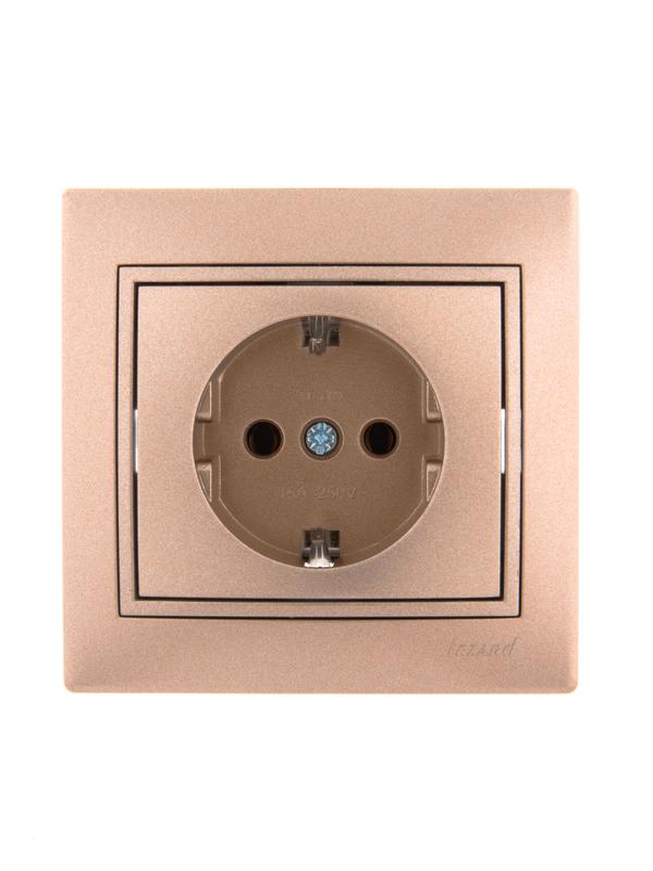 Розетка 1-м СП Mira 16А IP20 с заземл. со вставкой керамика свет. корич. перламутр. LEZARD 701-3131-122