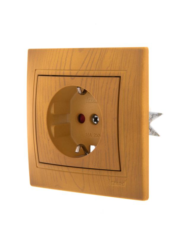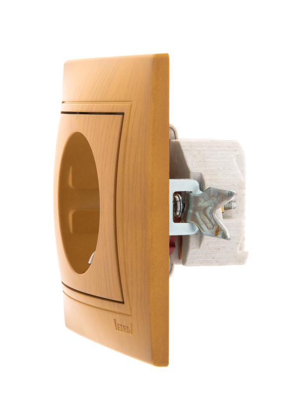 Розетка 1-м СП Mira 16А IP20 с заземл. защ. шторки керамика ольха LEZARD 701-0701-124
