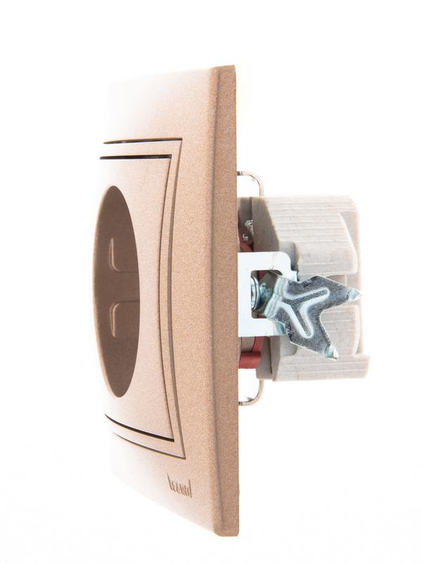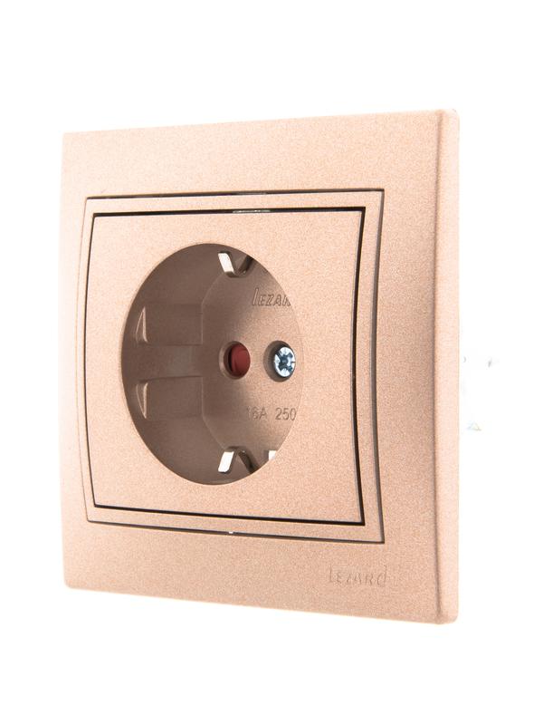 Розетка 1-м СП Mira 16А IP20 с заземл. защ. шторки со вставкой керамика свет. корич. перламутр. LEZARD 701-3131-124
