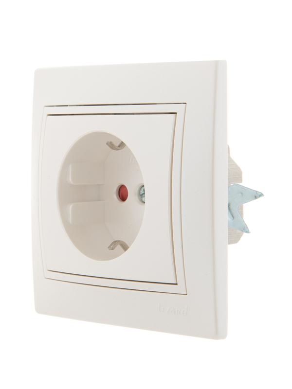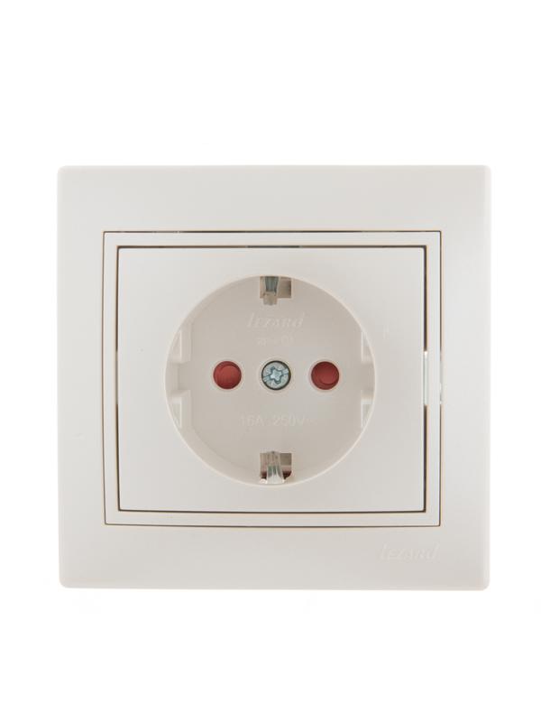 Розетка 1-м СП Mira 16А IP20 с заземл. защ. шторки со вставкой керамика жемчуж./бел. перламутр. LEZARD 701-3030-124