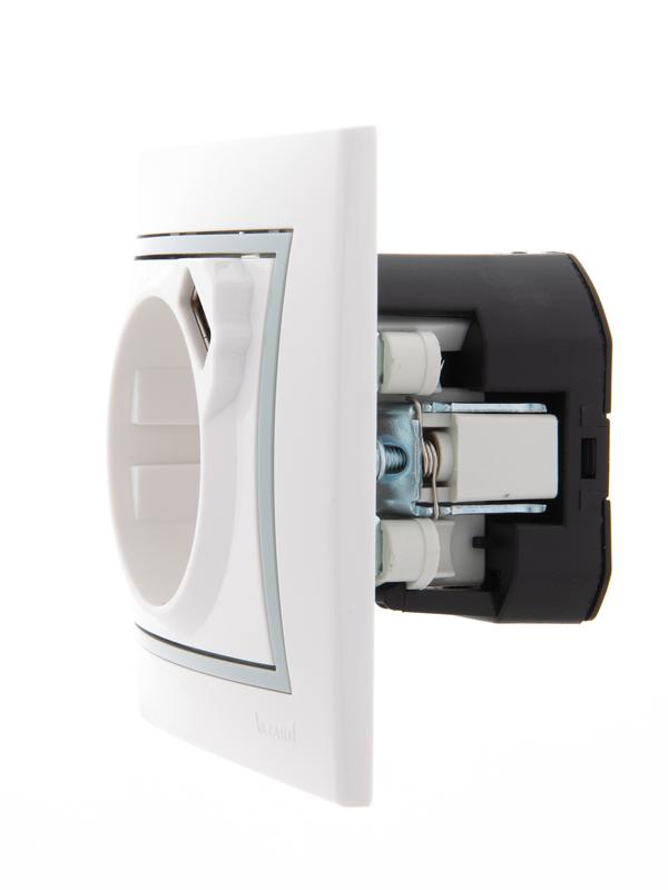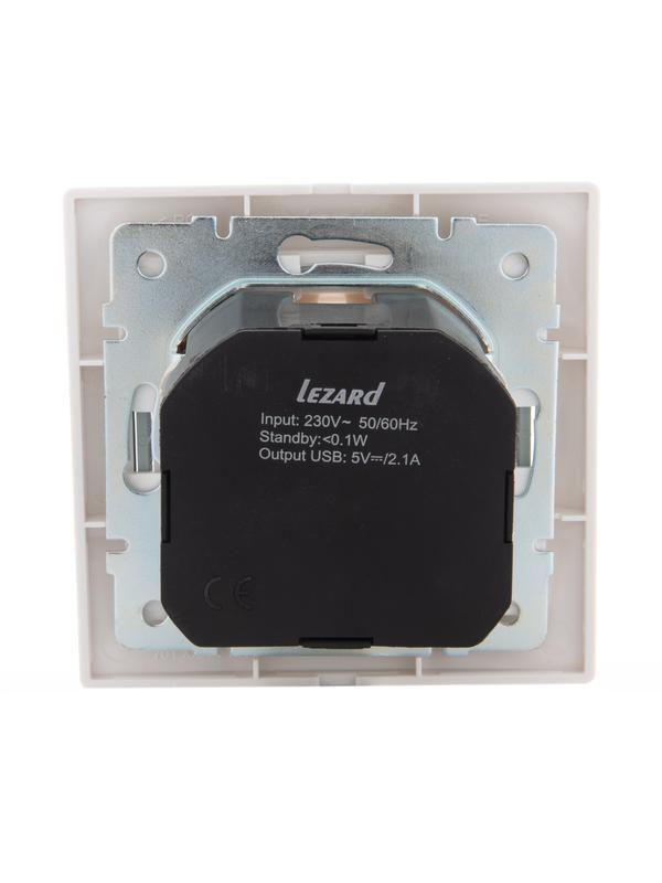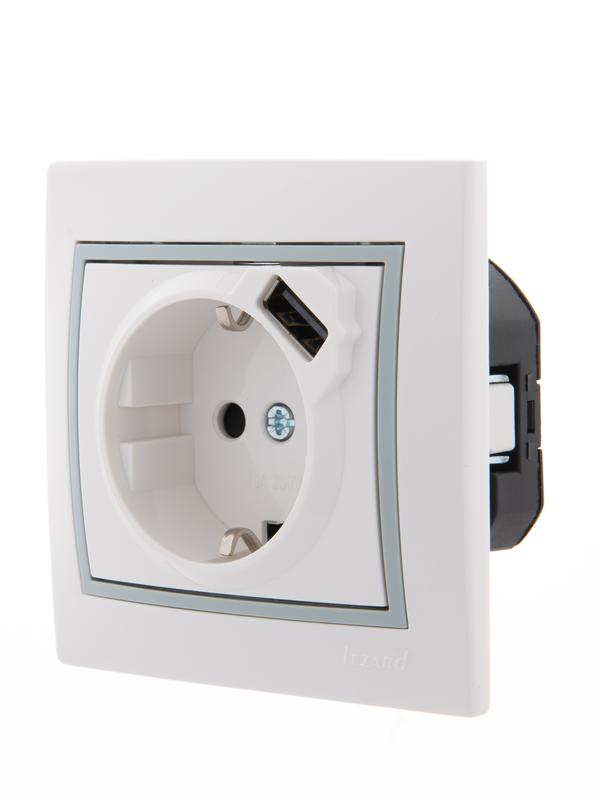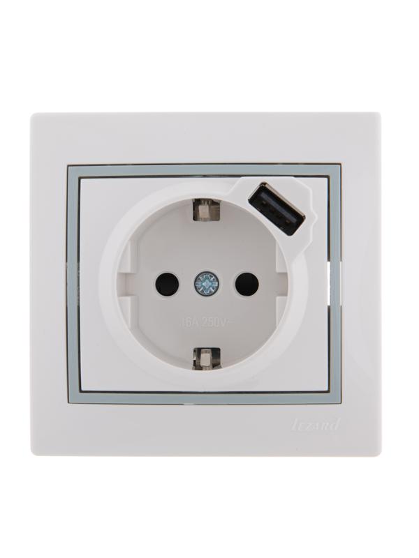 Розетка 1-м СП Mira 16А с заземл. + USB разъем с сер. вставкой бел. LEZARD 701-0215-181