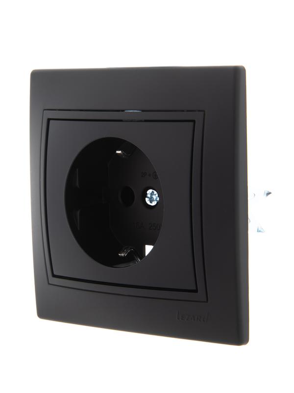 Розетка 1-м СП Mira с заземл. керамика черн. бархат LEZARD 701-4242-122