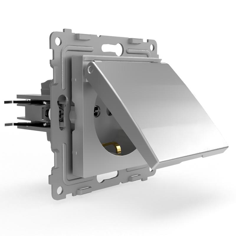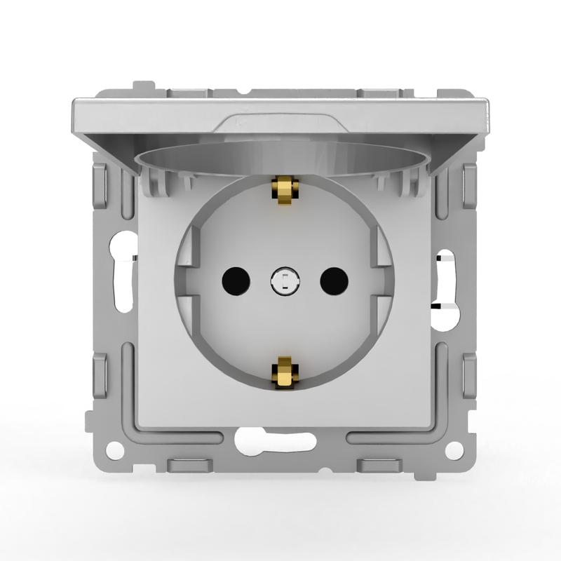 Розетка 1-м СП Pixel 16А IP20 с заземл. защ. шторки с крышкой механизм алюм. TOKOV ELECTRIC TKE-PX-R1ZSW1-C03